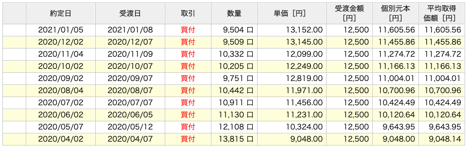 4月分から楽天証券で投資信託の積立を始めたので、受け渡し等がある度に記録をつけていくことにしました。2020年4月分がかなり好調だったので、この調子で額を伸ばしていきたいところですが、どうなるでしょうか。